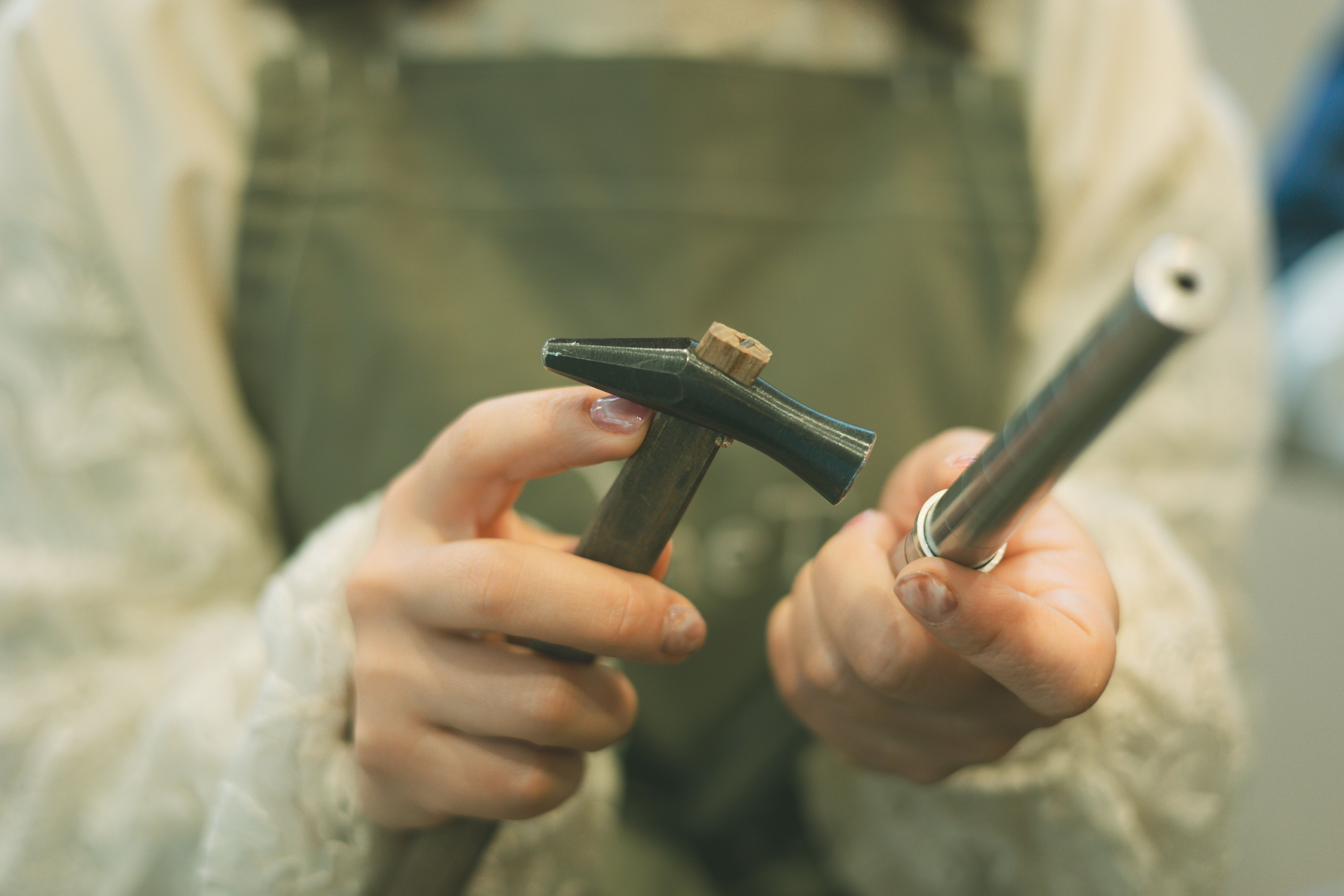2024.08.29 岐阜本店 この”柄”に一見ぼれ! 本日ご紹介させていただくカップル様は、笑顔が素敵な 岐阜県可児市 からお越しの Sさん・Mさんです✨ やって頂くのは、 金属を曲げて・溶接・叩く・磨く という指輪になる素材を直接加工してゆくコースです デザインは日本伝統工芸の一…