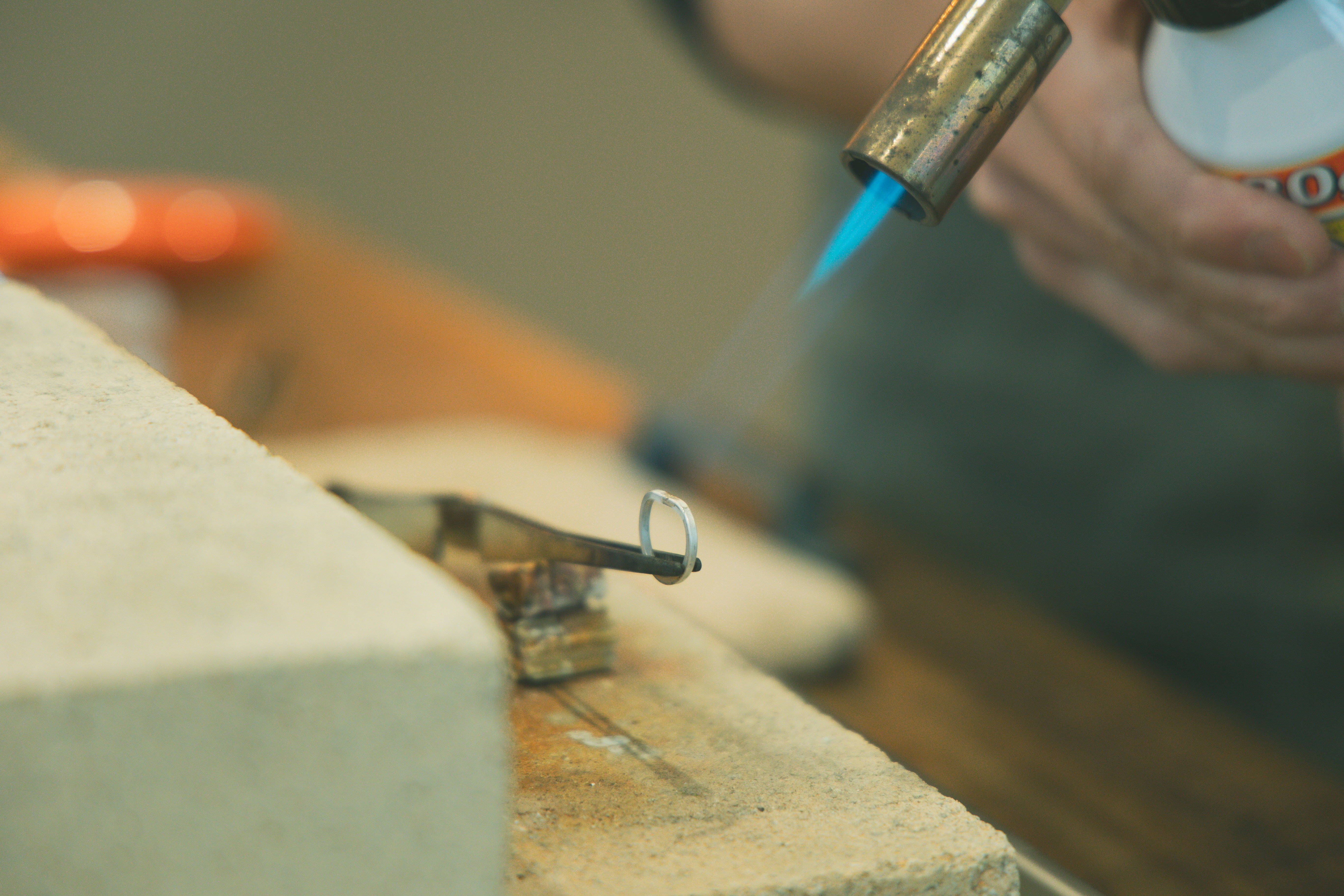 ここからは、指輪の切れ目を火とロウ材を使って、くっつけます!