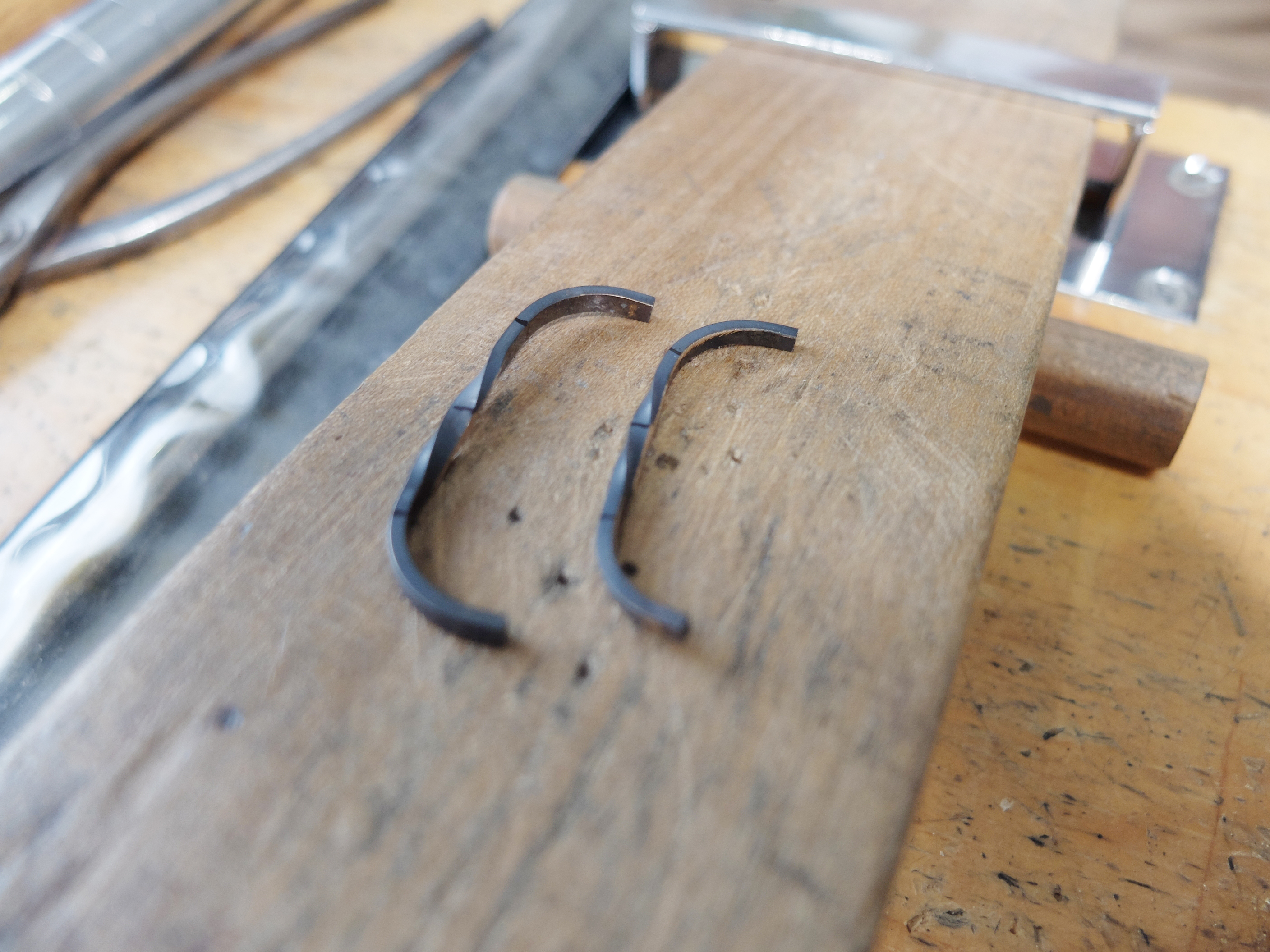やり方は様々ですが、主には「やっとこ」という道具を使って、手で曲げていきます✊