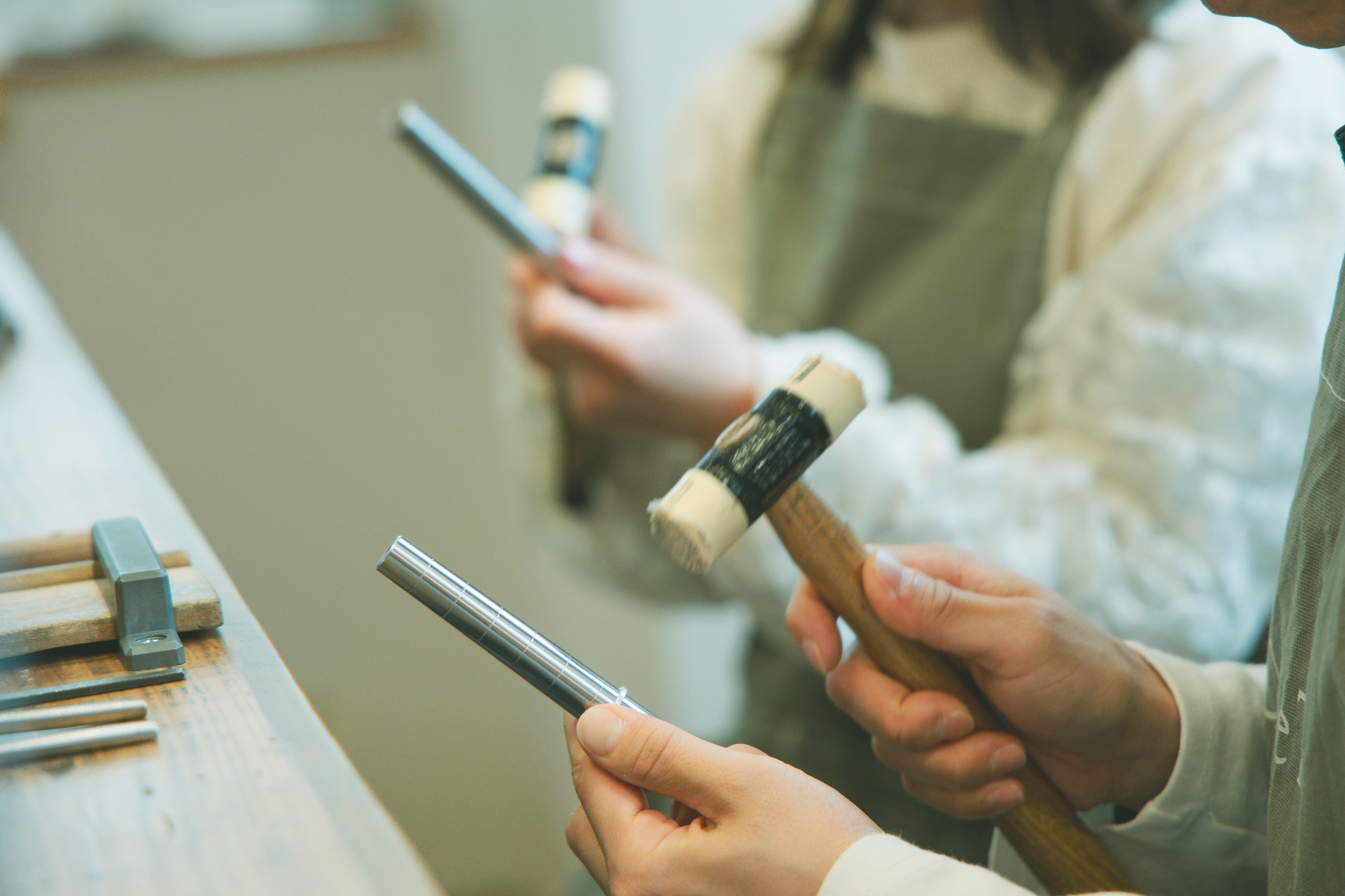 指輪がくっついたら、いよいよハンマーを使って指輪を真円にします🔨