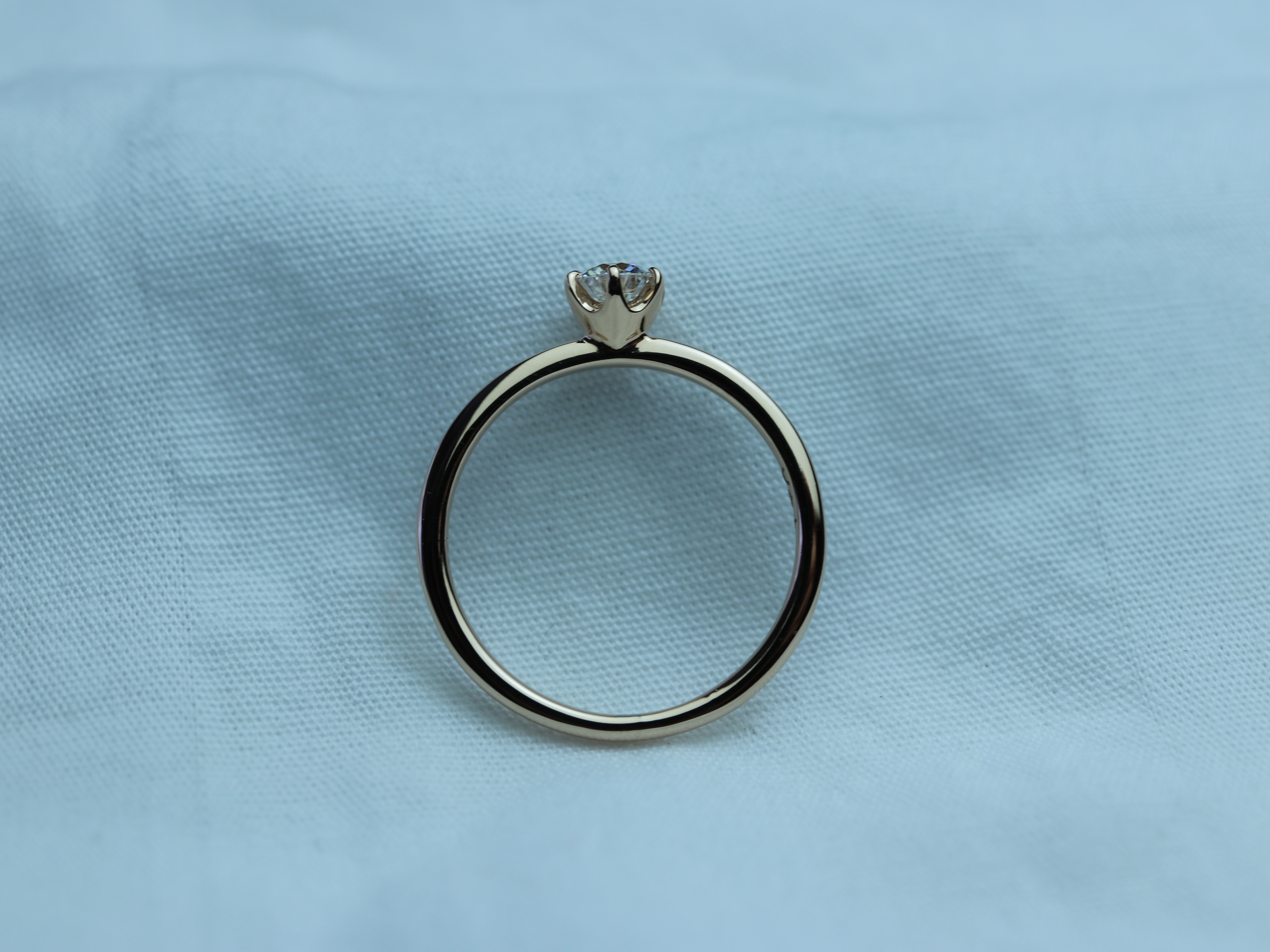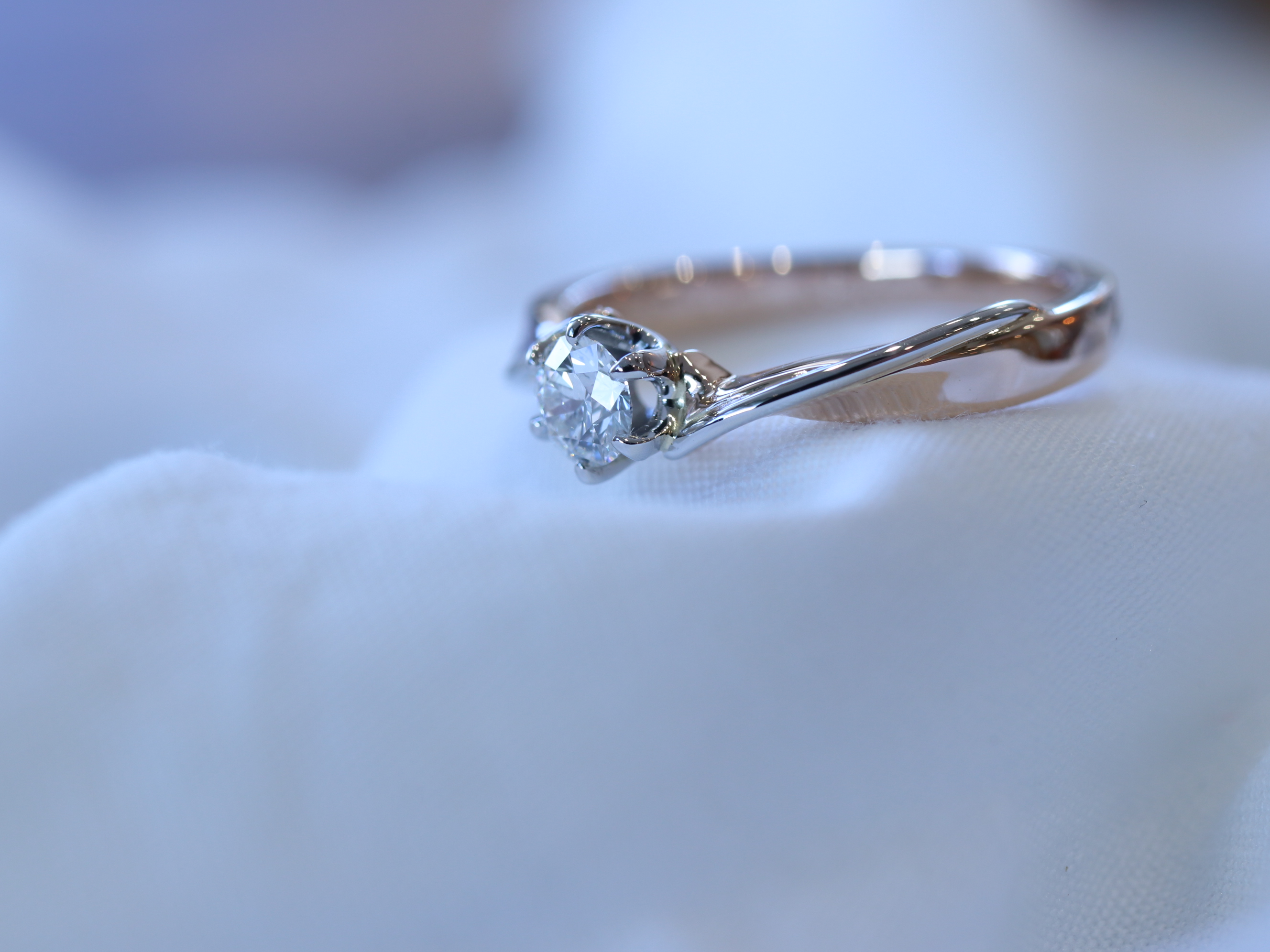中央のダイヤモンドに向かってリングもだんだんと細身になっていくデザインです。
