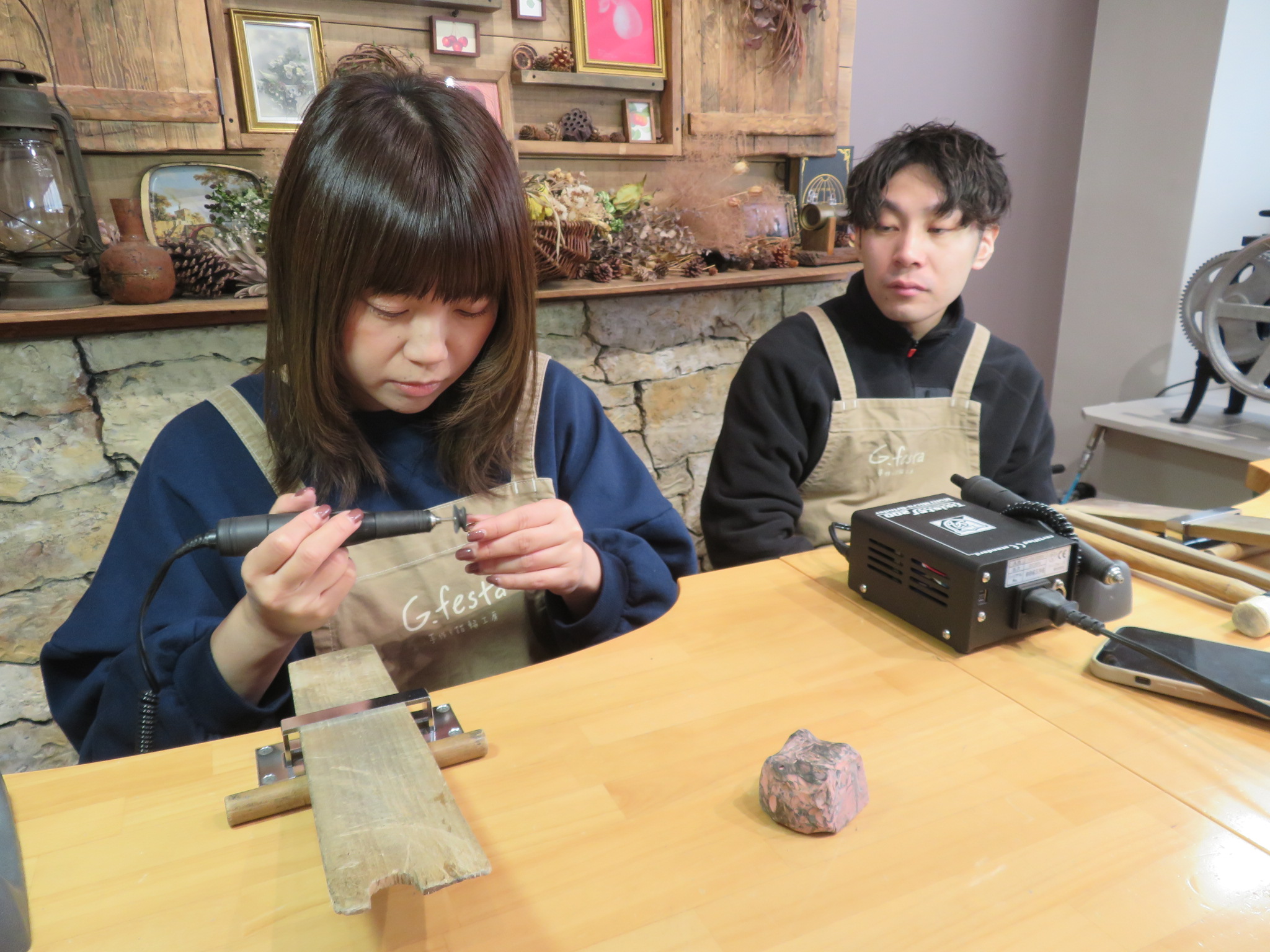 そんなお二人は当日お持ち帰りできる彫金コースでお作りいただきました😊