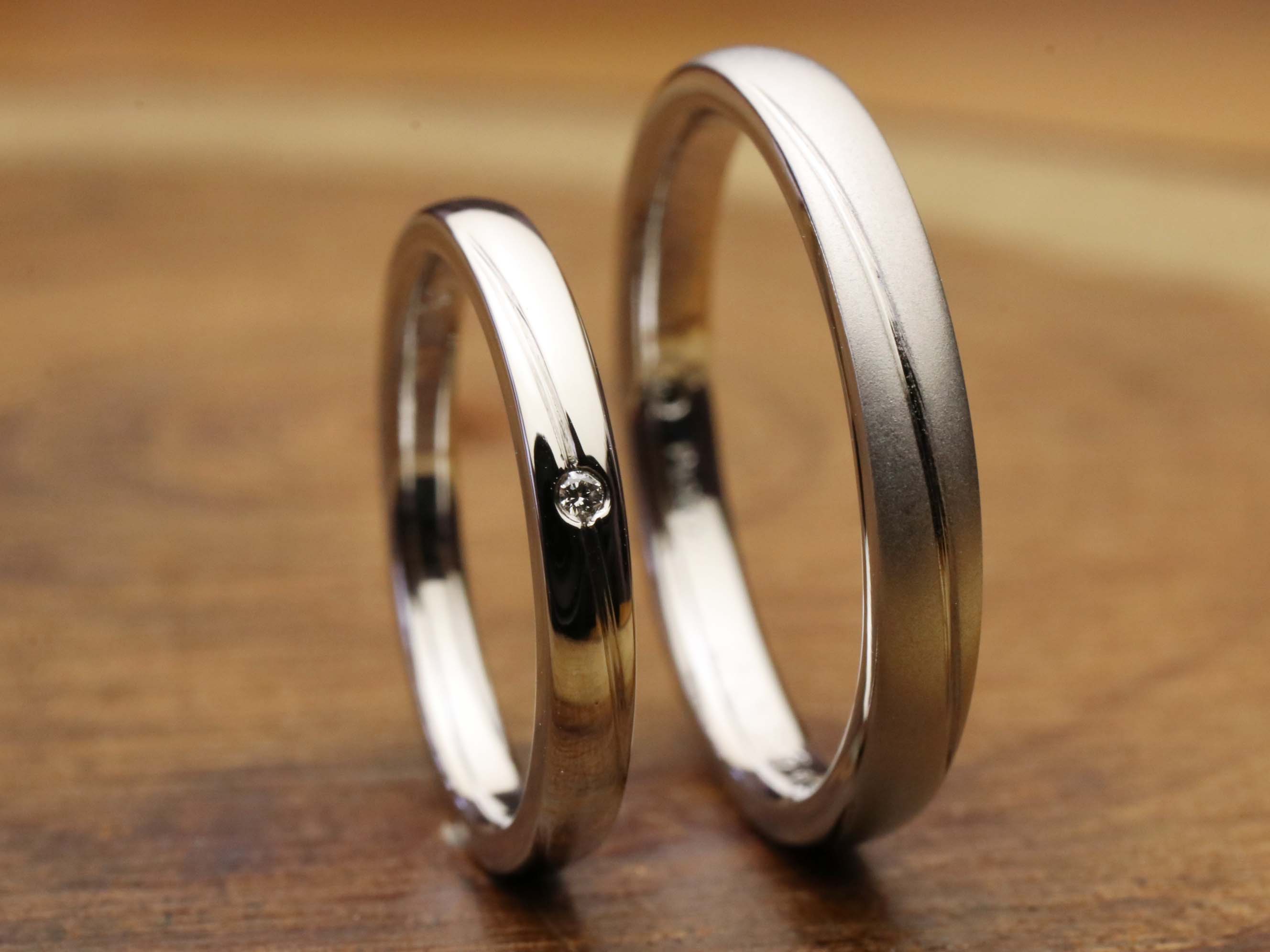 ストレートの指輪にワンポイント斜めの直線をデザインした素敵な結婚指輪が出来上がりました!