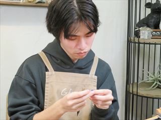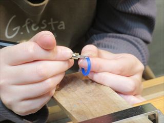 指輪の形が出来てきたら、つちめ模様を入れてきます!