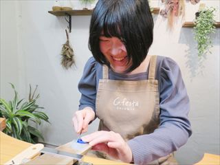 ワックスコースのつちめ模様は、カッターで一面ずつ表面を切って作ります
