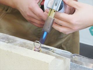 同じ金属の小さな欠片を指輪の切れ目に乗せます☟