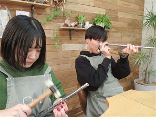 真円になっているか確認してもらいながら、お互いのサイズになるまで叩いていただきます!