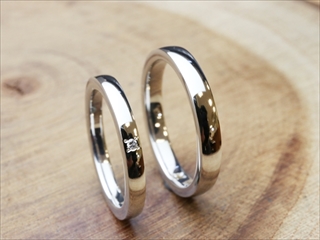 指輪は2本ともPt(プラチナ)素材にして、鏡面加工(ポリッシュ)に仕上げ。