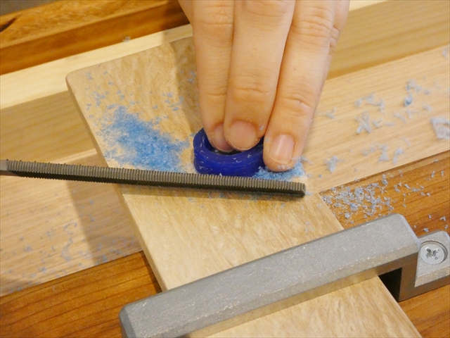 段を設けるところを、こちらで印をつけたのではみ出さないように、細かいヤスリで慎重に削っていきます。