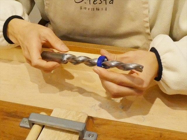 トップのねじりデザインの部分はスタッフと彼に説明を受けながら慎重に作っていきます