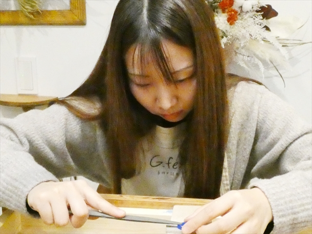 削る手ごたえや道具には慣れてきても、繊細な作業に入り彼女は少し困り顔…(;´д`)