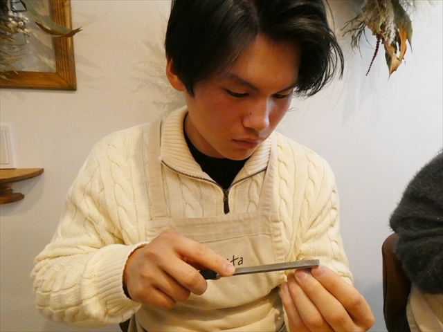 今からはそれぞれご希望の幅(太さ)になるように板状のヤスリを使っていきます♪
