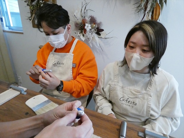 お互いご自身で指輪を今日は作っていきます