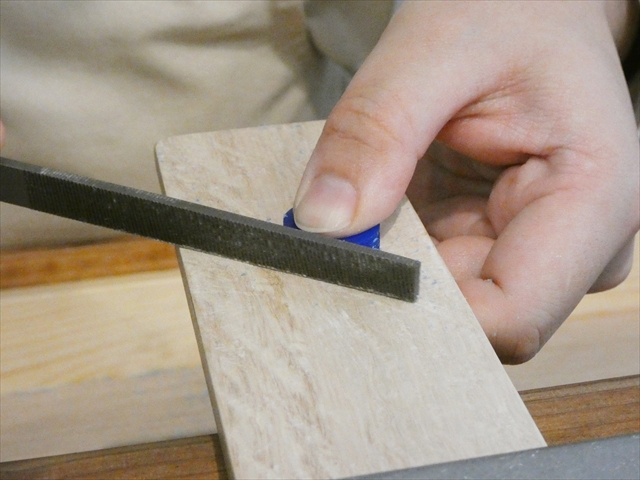 精密ヤスリで指輪を割らないように表面の角を落として滑らかにしましょう!!