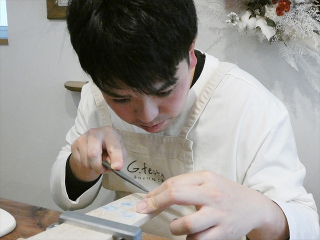 彼も慎重に仕上げて…!