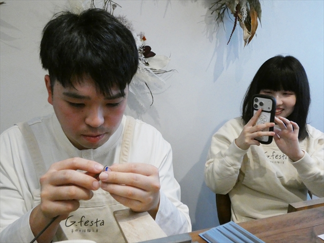 この工程、厚み出しで大変なのは彼の作っている彼女の指輪です