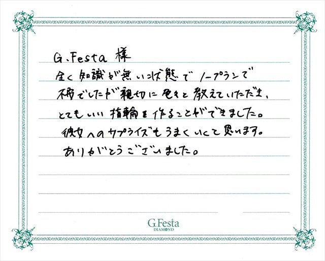 愛知県豊橋市 Tさん(名古屋店/婚約指輪)|先輩カップルのご紹介|G.festa