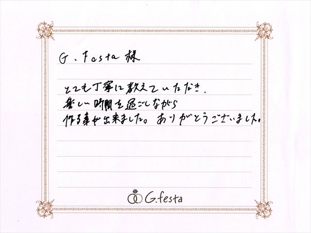 愛知県春日井市 Rさん (名古屋店/婚約指輪) ▲ 感想を読む DATA コース 婚約指輪 デザイン ウェーブ 店舗 名古屋店 制作時間 2時間 素材 Pt900 オプション 表面:ダイヤモンドセッティング