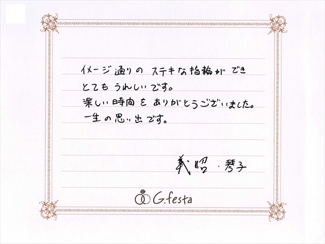 愛知県名古屋市 Yさん・Kさん (名古屋店/結婚指輪・彫金) ▲ 感想を読む DATA コース 結婚指輪(彫金) デザイン つち目コンビネーション 店舗 名古屋店 制作時間 1時間 素材 Pt900/K18YG K18YG リング幅 2.5mm/3.0mm