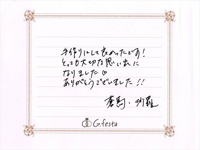 愛知県日進市 Sさん・Sさん (名古屋店/結婚指輪・彫金) ▲ 感想を読む DATA コース 結婚指輪(彫金) デザイン ツイスト 店舗 名古屋店 制作時間 1時間半 素材 PT900/PT900 リング幅 2.0mm/2.5mm