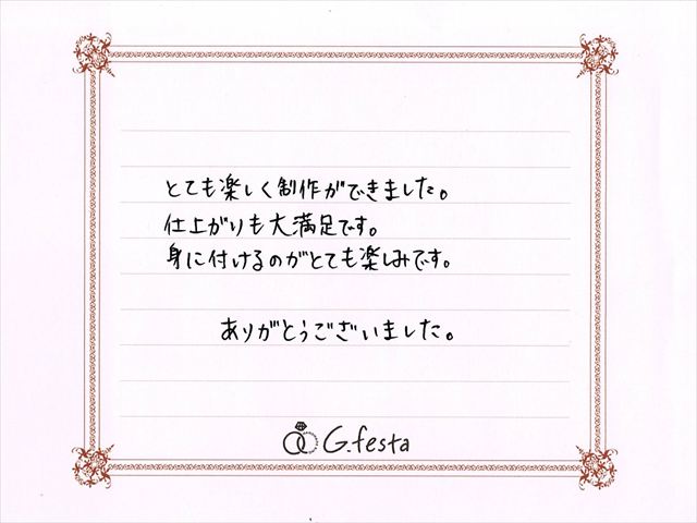 三重県鈴鹿市 YさんAさん (三重店/結婚指輪・彫金) ▲ 感想を読む DATA コース 結婚指輪(彫金) デザイン ストレート 店舗 三重店 制作時間 1時間半 素材 K18YG/K18YG リング幅 2.0mm/2.5mm