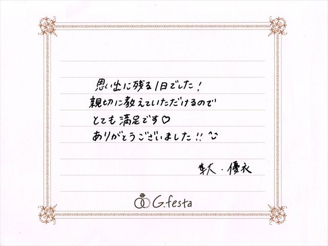 愛知県北名古屋市 Hさん・Yさん (名古屋店/結婚指輪・彫金) ▲ 感想を読む DATA コース 結婚指輪(彫金) デザイン つち目 店舗 名古屋店 制作時間 1時間半 素材 K18PG/Pt900 リング幅 2.5mm/2.5mm