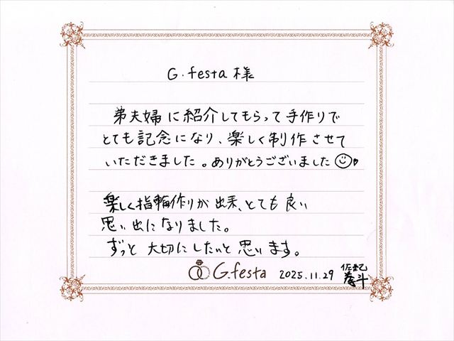 静岡県菊川市 Kさん・Sさん (浜松店/結婚指輪・彫金) ▲ 感想を読む DATA コース 結婚指輪(彫金) デザイン ストレート 店舗 浜松店 制作時間 1時間半 素材 Pt900/Pt900 リング幅 2.0mm/2.5mm オプション 内面:誕生石セッティング