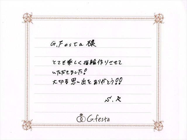 三重県員弁郡 Sさん・Rさん (名古屋店/結婚指輪・彫金) ▲ 感想を読む DATA コース 結婚指輪(彫金) デザイン ツイスト 店舗 名古屋店 制作時間 1時間半 素材 K18PG/Pt900 リング幅 2.0mm/2.0mm オプション 表面:ダイヤモンドセッティング