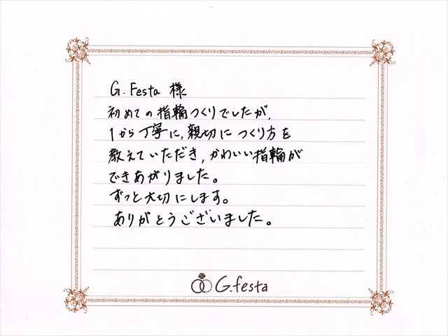 静岡県県富士宮市 Rさん・Rさん (浜松店/結婚指輪・彫金) ▲ 感想を読む DATA コース 結婚指輪(彫金) デザイン ツイスト 店舗 浜松店 制作時間 2時間 素材 Pt900/Pt900 リング幅 2.0mm/2.5mm