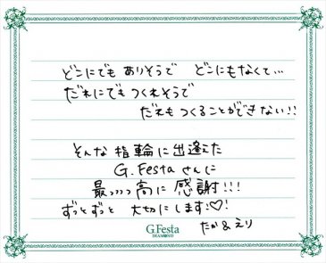 岐阜県海津市 Tさん・Eさん (岐阜本店/結婚指輪・ワックス) ▲ 感想を読む DATA コース 結婚指輪(ワックス) デザイン ストレート 店舗 岐阜本店 制作時間 2時間 素材 K18PG/K18YG リング幅 2.5mm/3.2mm オプション 内面:誕生石セッティング