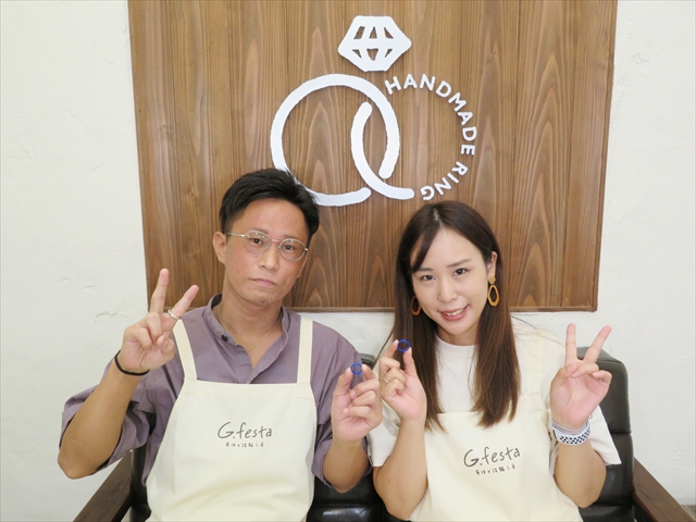 静岡県袋井市 Tさん・Aさん (浜松店/結婚指輪・ワックス) ▲ 感想を読む DATA コース 結婚指輪(ワックス) デザイン ストレートつち目 店舗 浜松店 制作時間 2時間 素材 K18PG/K18YG リング幅 2.3mm/3.0mm オプション 内面:誕生石セッティング