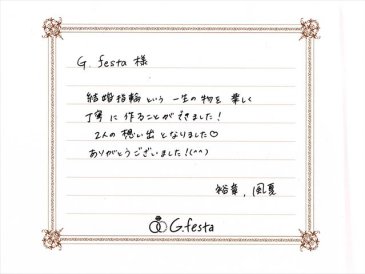愛知県春日井市 Hさん・Fさん (岐阜本店/結婚指輪・ワックス) ▲ 感想を読む DATA コース 結婚指輪(ワックス) デザイン ウェーブ 店舗 岐阜本店 制作時間 2時間 素材 K18PG/Pt900 Pt900 リング幅 2.5mm/2.8mm オプション 表面:ダイヤモンドセッティング/内面:誕生石セッティング