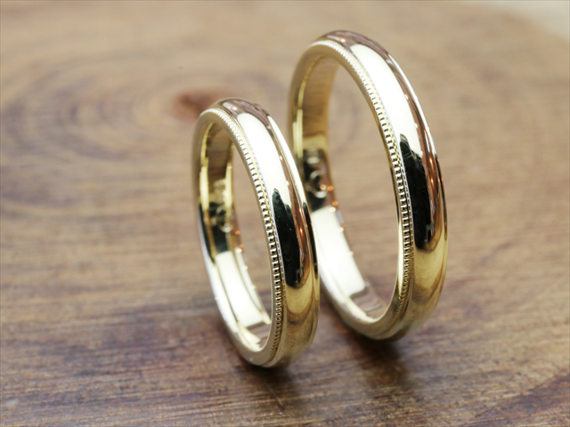 愛知県豊川市 Kさん・Iさん (名古屋店/結婚指輪・ワックス) ▲ 感想を読む DATA コース 結婚指輪(ワックス) デザイン ストレート 店舗 名古屋店 制作時間 2時間 素材 K18YG リング幅 3.0mm オプション 内面:誕生石セッティング