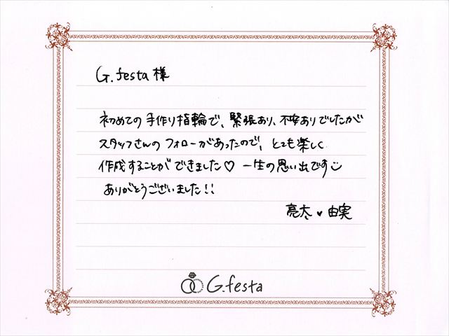 三重県鈴鹿市 Rさん・Yさん (三重店/結婚指輪・ワックス) ▲ 感想を読む DATA コース 結婚指輪(ワックス) デザイン クロス 店舗 三重店 制作時間 2時間半 素材 K18PG/Pt900 リング幅 2.5mm/3.0mm オプション 表面:ダイヤモンドセッティング 内面:誕生石セッティング