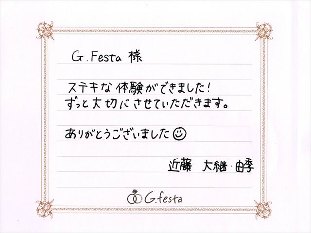愛知県名古屋 Hさん・Yさん (浜松店/結婚指輪・ワックス) ▲ 感想を読む DATA コース 結婚指輪(ワックス) デザイン 個性派 店舗 浜松店 制作時間 2時間 素材 K18PG/K18YG リング幅 2.5mm/3.0mm オプション 表面:ダイヤモンドセッティング 内面:誕生石セッティング