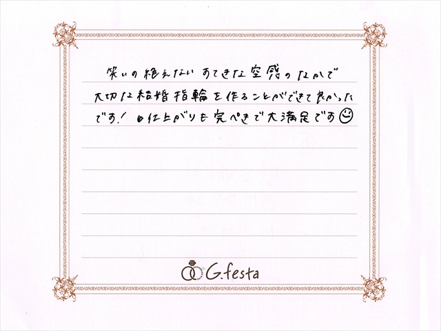 愛知県岡崎市 Sさん・Sさん (岡崎店/結婚指輪・ワックス) ▲ 感想を読む DATA コース 結婚指輪(ワックス) デザイン 多面体 店舗 岡崎店 制作時間 2時間半 素材 Pt900/Pt900 リング幅 2.5mm/3.0mm