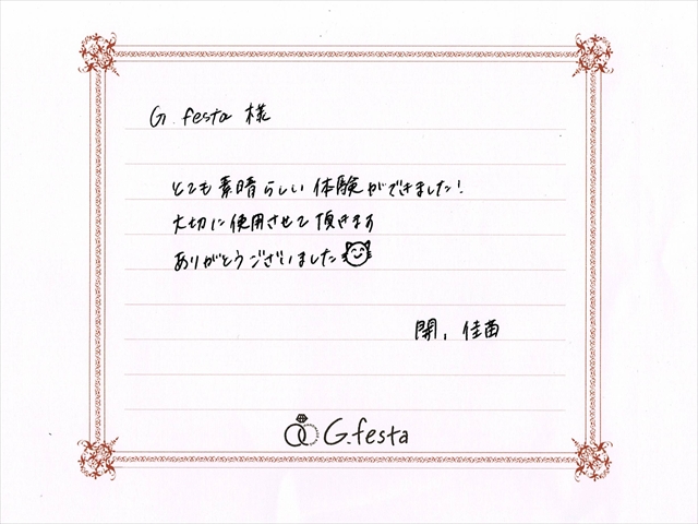 三重店伊勢市 Kさん・Kさん (三重店/結婚指輪・ワックス) ▲ 感想を読む DATA コース 結婚指輪(ワックス) デザイン ストレート 店舗 三重店 制作時間 2時間 素材 Pt900/Pt900 リング幅 2.0mm/2.0mm オプション 表面:ダイヤモンドセッティング 内面:誕生石セッティング