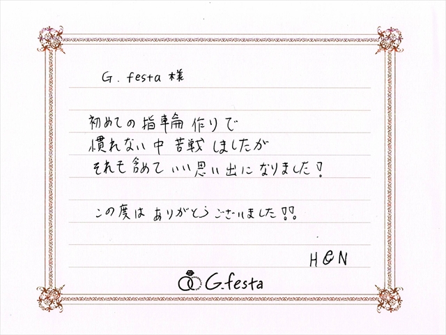 岐阜県岐阜市 Hさん・Nさん (岐阜本店/結婚指輪・ワックス) ▲ 感想を読む DATA コース 結婚指輪(ワックス) デザイン ツイスト 店舗 岐阜本店 制作時間 2時間半 素材 Pt100/Pt100 リング幅 2.5mm/3.0mm