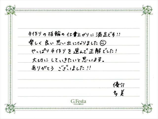 愛知県岩倉市 Yさん・Tさん (名古屋店/結婚指輪・ワックス) ▲ 感想を読む DATA コース 結婚指輪(ワックス) デザイン ウェーブ 店舗 名古屋店 制作時間 2時間 素材 プラチナ リング幅 2.5mm/2.8mm オプション 表面:ダイヤモンドセッティング 内面:誕生石セッティング