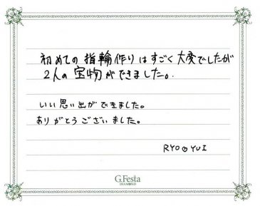 愛知県西尾市 Rさん・Yさん (名古屋店/結婚指輪・ワックス) ▲ 感想を読む DATA コース 結婚指輪(ワックス) デザイン ストレート 店舗 名古屋店 制作時間 3時間 素材 プラチナ リング幅 2.68mm/2.6mm オプション 表面:ダイヤモンドセッティング 内面:誕生石セッティング