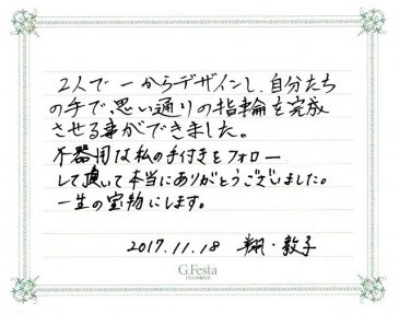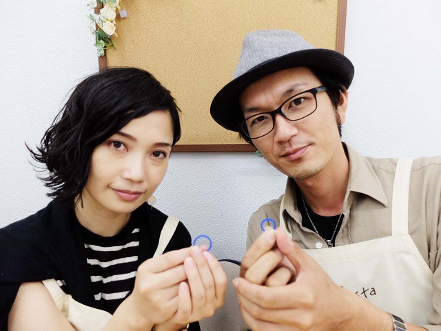 愛知県北名古屋市 Sさん・Aさん (名古屋店/結婚指輪・ワックス) ▲ 感想を読む DATA コース 結婚指輪(ワックス) デザイン ストレート 店舗 名古屋店 制作時間 3時間 素材 K18PG リング幅 2.8mm オプション 表面:誕生石セッティング