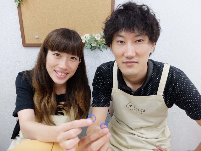 愛知県海部郡 Nさん・Mさん (名古屋店/結婚指輪・ワックス) ▲ 感想を読む DATA コース 結婚指輪(ワックス) デザイン ストレート 店舗 名古屋店 制作時間 2時間 素材 プラチナ リング幅 2.5mm/3mm オプション 内面:誕生石セッティング