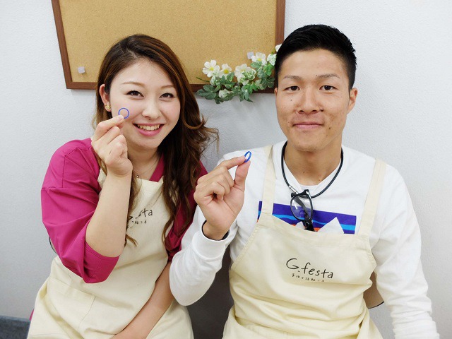 愛知県みよし市 Hさん・Sさん (名古屋店/結婚指輪・ワックス) ▲ 感想を読む DATA コース 結婚指輪(ワックス) デザイン ストレート 店舗 名古屋店 制作時間 2時間 素材 K18YG リング幅 2.8mm/3mm オプション 表面:ダイヤモンドセッティング 内面:誕生石セッティング