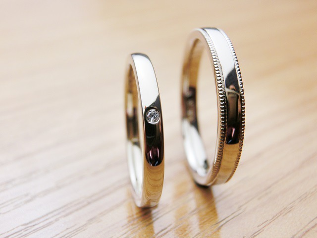 三重県津市 Kさん・Yさん (三重店/結婚指輪・ワックス) ▲ 感想を読む DATA コース 結婚指輪(ワックス) デザイン ストレート 店舗 三重店 制作時間 2時間 素材 K18WG リング幅 2.5mm/3mm オプション 表面:ダイヤモンドセッティング
